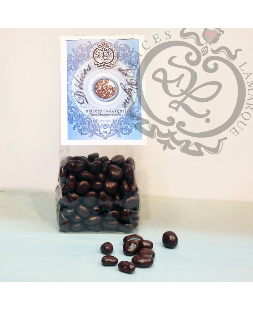 Le Délice de vigne est un grain de raisin macéré dans du vin blanc doux, enrobé de chocolat noir et délicatement arômatisé à la pêche. Laissez vous surprendre par l'équilibre subtil du raisin liquoreux et fruité, associé au côté gourmand du chocolat.