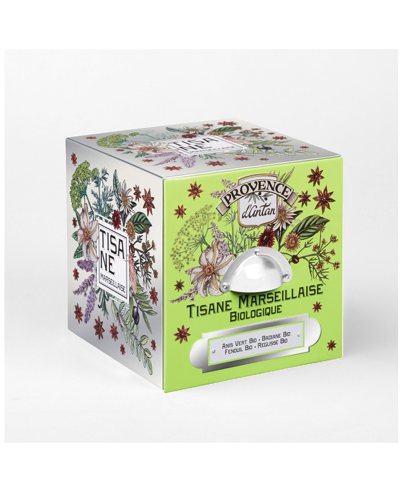 Cette délicieuse tisane à l'anis vous fait débarquer sur le vieux port. Sous le regard protecteur de Notre Dame de la Garde, vous goûter au soleil qui émane de cette infusion. Une marseillaise au grand coeur, fière de ses arômes de badiane, de fenouil et de réglisse. Elle invite vos papilles à parcourir les ruelles historiques du Panier jusqu'aux Goudes en passant par le paisible Vallon des Auffes. Une balade au milieu des calanques, où la nature expose la beauté de ses merveilles.