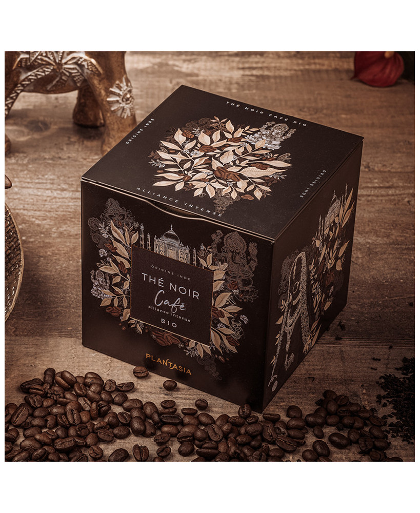 Composition : Thé noir Bio origine Inde 92%, Café Bio 4%, Arôme naturel café 4%.