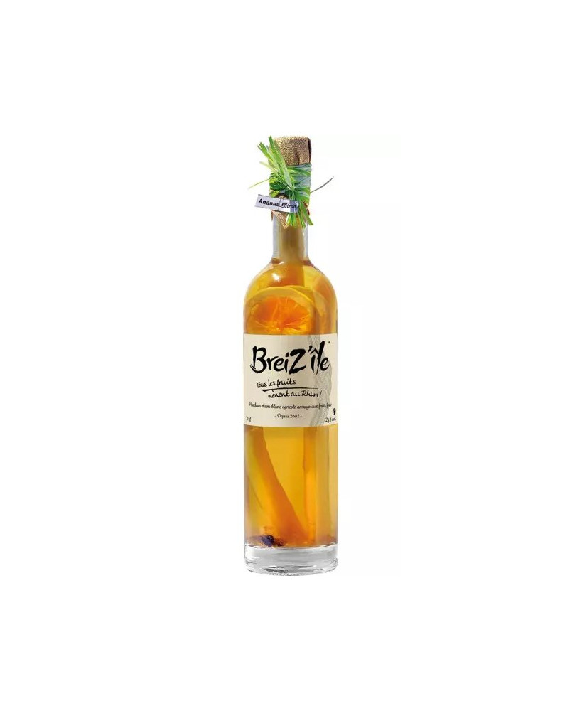 Un punch au rhum arrangé Ananas Citron aux reflets ensoleillés de la Guadeloupe. Après une sélection méticuleuse des fruits, ceux-ci sont préparés à la main, minutieusement, pour conserver toutes leurs qualités gustatives. Après deux mois de macération, l'ananas et le citron laissent au rhum blanc agricole une empreinte sucrée et équilibrée. Ce grand classique des punchs au rhum Antillais développe en bouche rondeur et grande richesse aromatique. Avec ses notes fruitées et harmonieuses, le Breiz'île Tradition - Ananas Citron séduit tous les amateurs de rhums arrangés.