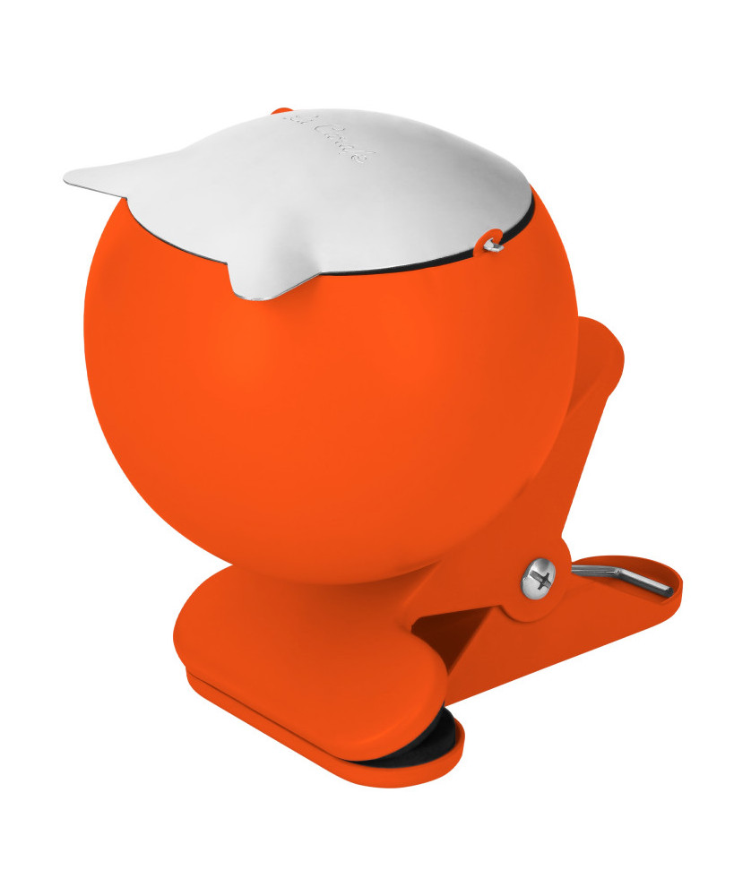 Voici le cendrier d'appoint "La Carafe". Coloré comme toute nos gammes, ce nouvel objet de la marque reprend le design "Pop Space Age" des années 70. De forme boule, il dispose d'un clapet pivotant anti-odeur en métal chromé ainsi que d'un double repose cigarette. Sa pince équipée de protections en mousse permet de la clipser sur le bord d'une table en évitant toute rayures.