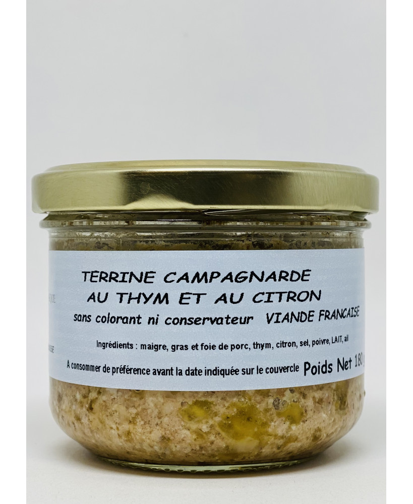 Composition : maigre, gras et fois de porc*, thym, citron, lait, sel, poivre, ail