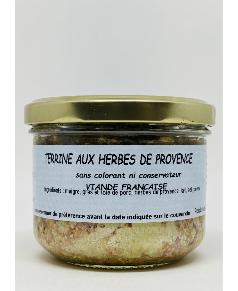 Composition : maigre, gras et fois de porc*, herbes de provence, oeufs, lait, sel, poivre
