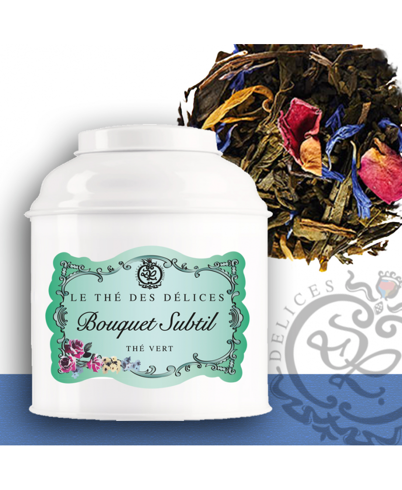 Ingrédients : Thé vert, fleurs de bleuet, pétales de rose, fleurs de souci, arômes.
