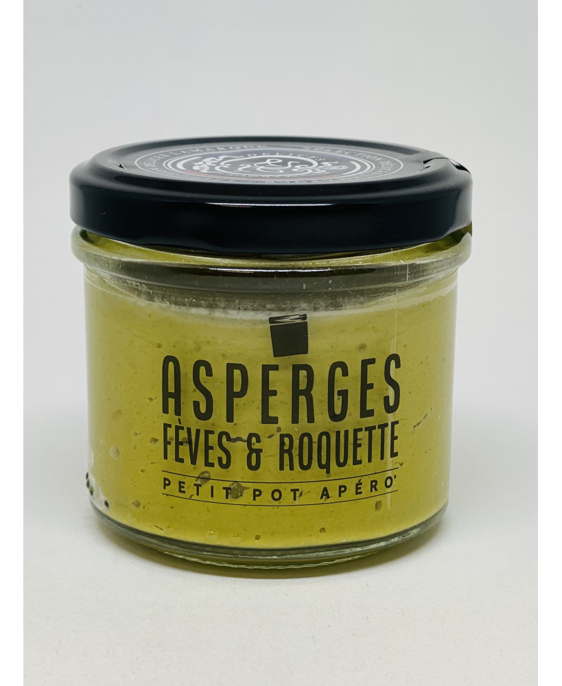 Composition : Asperges vertes (75%), fèves, huile de colza, huile d’olive, roquette, sel gris de Millac, citron jaune*, poivre sauvage de Madagascar.