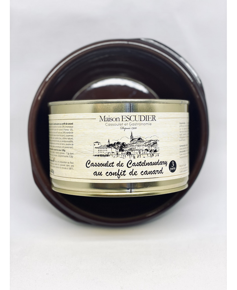 L’indispensable de votre garde manger sélectionné par les Délices Lamarque : le cassoulet de Castelnaudary servi dans sa cassole en terre cuite, généreusement garni en viande (confit de canard, saucisse maison et couennes) et en haricots lingots, le tout préparé dans un jus artisanal soigneusement cuisiné aux saveurs de volaille et d’aromates. Tous les gourmets à la recherche d’authenticité et d’excellence vont se régaler avec ce plat complet et exceptionnel. Au-delà des saveurs, le cassoulet de Castelnaudary est un plat convivial, un véritable chef d'œuvre !